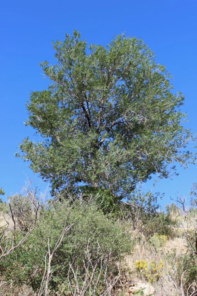 Then I looked up. A steep slope covered in rocks and chamisa and crowned by trees stretched to the sky. No garbage there.
