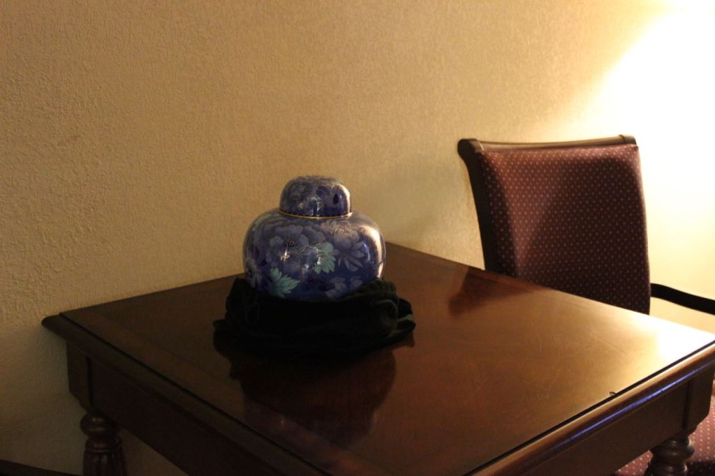 I turned in early but didn’t sleep for shit. Woke up every hour on the hour. Finally dragged out of bed at six Labor Day morning and started the day with the shittiest cup of hotel coffee ever. Took another swim in the pool to expel some adrenaline. Dried off too hastily and dripped water from under my cover-up as I rode the elevator next to two men covered head to toe in hunting camo. After a shower I re-packed, wolfed down a banana—no way could I sit through the free continental breakfast in the crowded hotel lounge with my stomach in knots—and took one last look at the urn containing my mother’s ashes. Burst into tears.