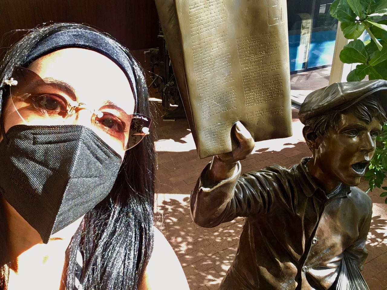 Here’s me totally geeking out next to a bronze statue of a paper boy.